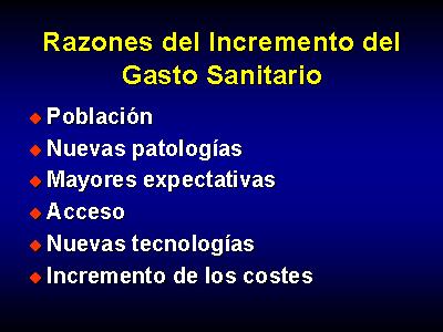 Existen múltiples razones que explican el incremento del gasto sanitario, entre las que se suelen indicar: