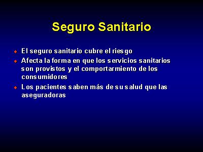 El seguro sanitario afectara la forma en que los servicios sanitarios son provistos y tambien el comportarmiento de los consumidores, en parte porque los pacientes saben más de su salud que las aseguradoras.