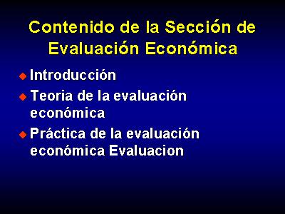 El contenido es una introducción, el análisis de la teoria de la evaluación económica, y el estudio de la práctica de la evaluación económica.