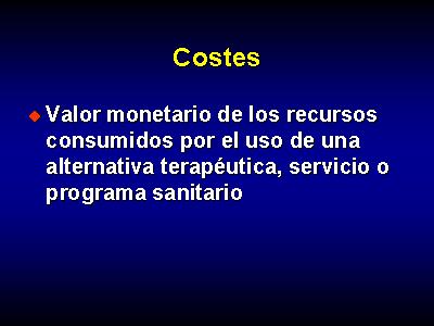 Los costes son el valor monetario de los recursos consumidos por el uso de una alternativa terapéutica, servicio o programa sanitario