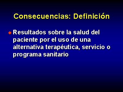 Las consecuencias son los resultados sobre la salud del paciente por el uso de una alternativa terapéutica, servicio o programa sanitario