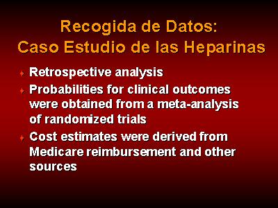 El estudio de las heparinas es un análisis retrospectivo. Las consecuencias fueron obtenidas mediante un metaanálisis de ensayos clínicos, y los costes fueron derivados de las tarifas de pago de Medicare (programa público para ancianos y descapacitados de U.S.) y otras fuentes.
